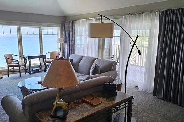 Center Unit with Wide Porch. Includes full-size gourmet kitchen, gas fireplace, steam shower, jetted bathtub, Wi-Fi, HDR televisions, Bose SoundLink audio systems. Access to community indoor/outdoor pools, sauna and boutique fitness center. Smoke free. No pets allowed.