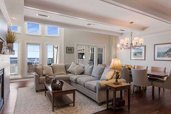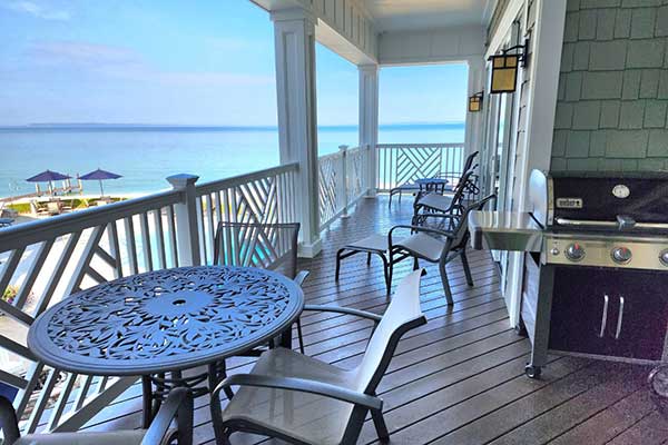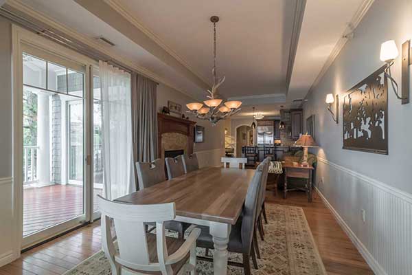 Corner Unit with Wraparound Porch. Includes full-size gourmet kitchen, gas fireplace, steam shower, jetted bathtub, Wi-Fi, HDR televisions, Bose SoundLink audio systems. Access to community indoor/outdoor pools, sauna and boutique fitness center. Smoke free. No pets allowed.